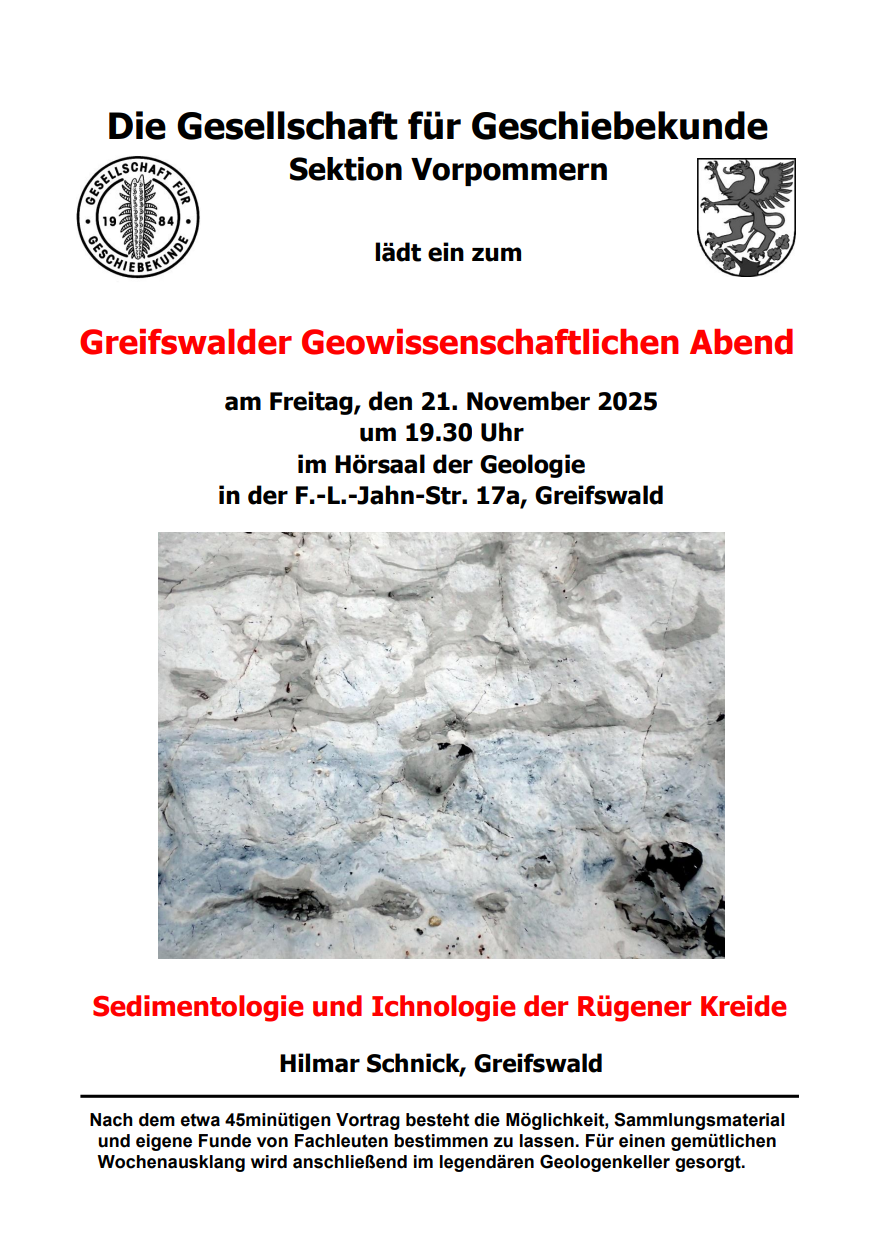 21.11.2025 19:30 Uhr – Sedimentologie und Ichnologie der Rügener Kreide