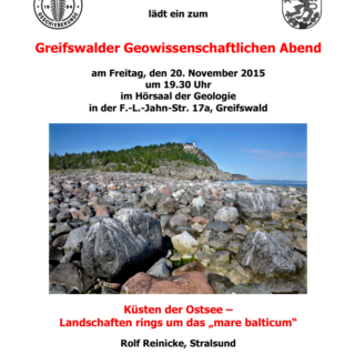 Liebe Geschiebefreunde, das Jahresprogramm für 2017 ist fertig. Das breit gefächerte Vortragsspektrum umfasst interessante Beiträge über die erdgeschichtliche Entwicklung der Landpflanzen anhand versteinerter Hölzer, gut erhaltene unterkambrische Spurenfossilien Mittelschwedens, die Formenvielfalt und den Artenreichtum von Trilobiten und Cephalopoden in den Weltmeeren. Reiseberichte zu den arktischen Küsten Norwegens und dem Inselparadies Galapagos informieren über präkambrische Vereisungen Balticas bzw. über plattentektonische Prozesse im Pazifik und die Entwicklung endemischer Faunen, wie den berühmten Darwinfinken oder die einzigartigen Meerechsen. Exkursionen führen uns zu den unter Sammlern beliebten Geschiebestrand von Dwasieden und mit etwas Glück auch in die Kiesgrube Langsdorf. Jahresprogramm 2017 der Sektion Vorpommern...