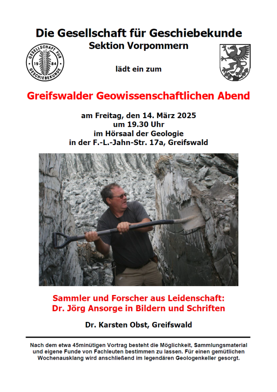 - 31.05.2024 18.30 Uhr – „Mit Geschieben gepflastert…“ Rückblicke auf ein ungewöhnliches Geologenleben