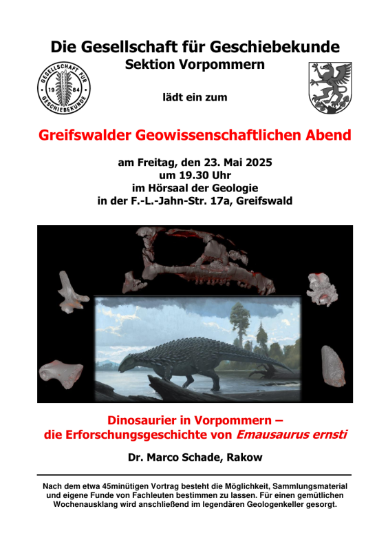 - 24.05.2025 19:30 Uhr – Dinosaurier in Vorpommern – die Erforschungsgeschichte von Emausaurus ernsti