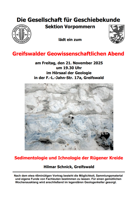 - 21.11.2025 19:30 Uhr – Sedimentologie und Ichnologie der Rügener Kreide